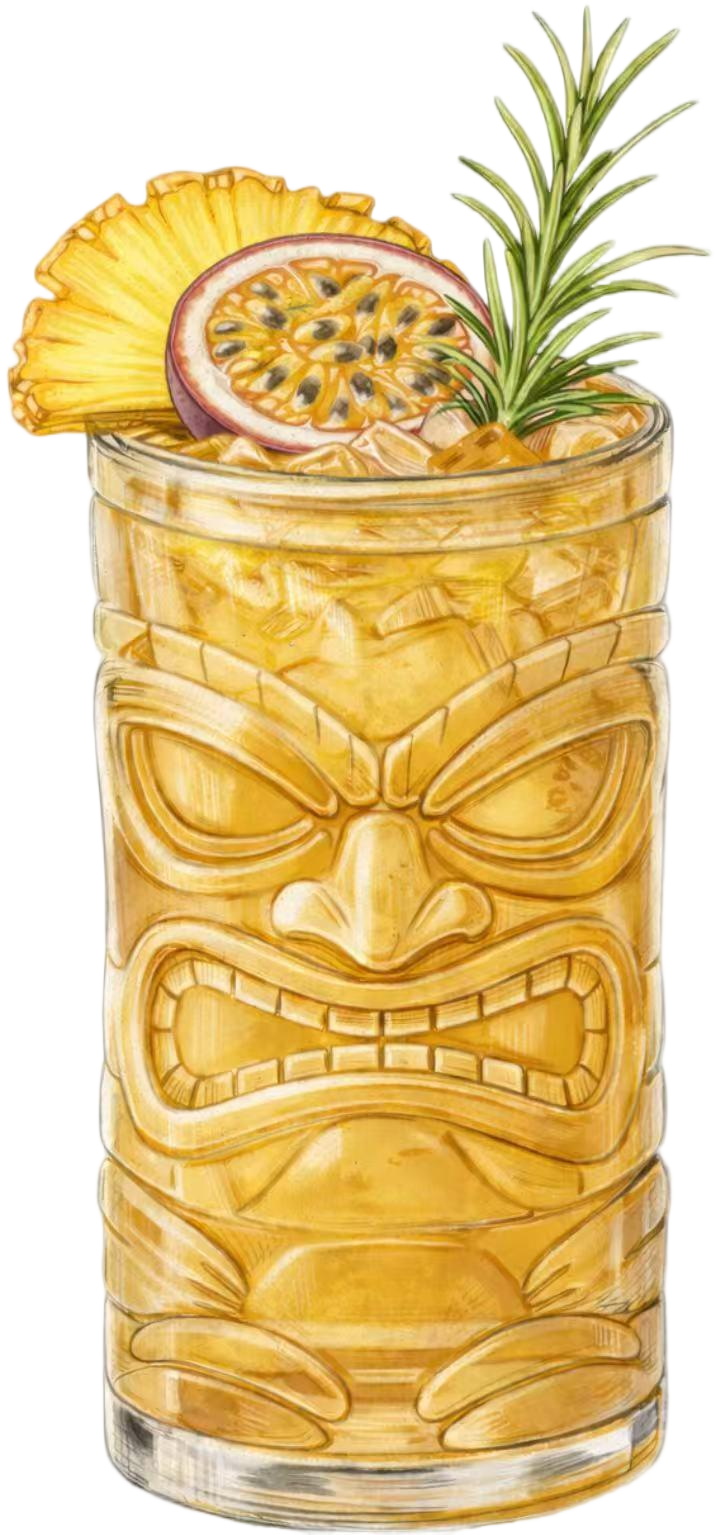 White rum / dark rum / gold rum / lime juice / pineapple juice / passion fruit syrup / Angostura bitters / almond syrup / orange juice